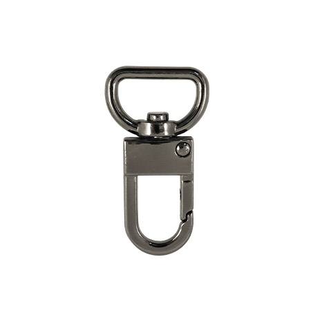 Металлический карабин №1504 с поворотным полукольцом — это надёжный и функциональный элемент фурнитуры, идеально подходящий для пошива сумок, рюкзаков, создания брелоков и других аксессуаров. Изготовлен из полированного металла с качественным покрытием, он обеспечивает долговечность использования и эстетичный внешний вид. Карабин доступен в двух цветах: никель и тёмный металл, что позволяет выбрать оптимальный вариант для различных дизайнерских решений. Поворотное полукольцо обеспечивает удобство использования и гибкость в креплении, подходит для стропы шириной 1,5 см. Надёжный пружинный механизм карабина позволяет легко и без усилий присоединить или снять элемент изделия. Общий размер карабина 2,2х4,1 см.
