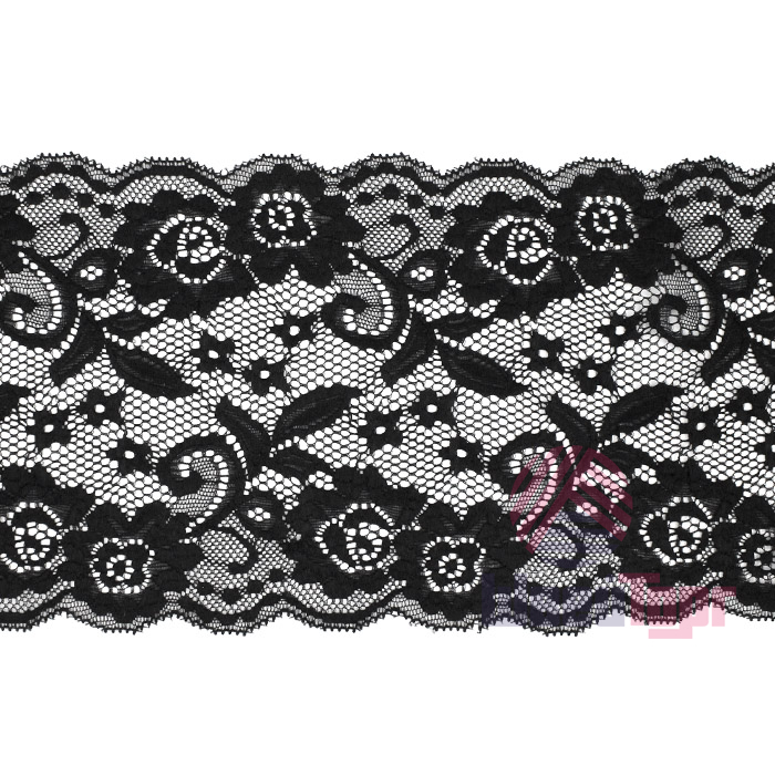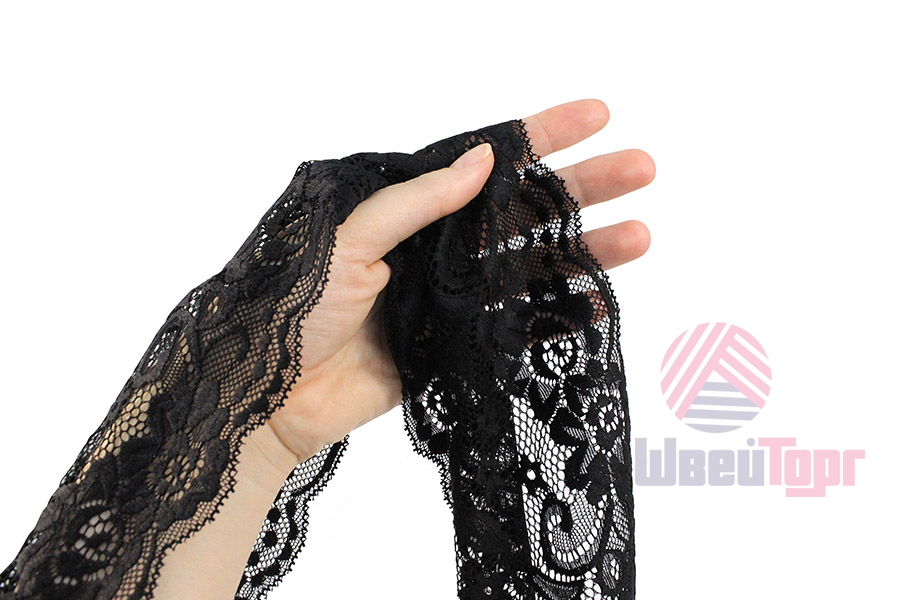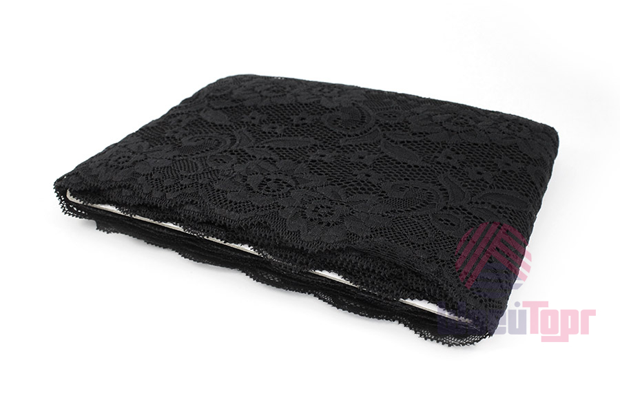 Кружево стрейч №T598A №039 (чёрный) 1/9,14 м