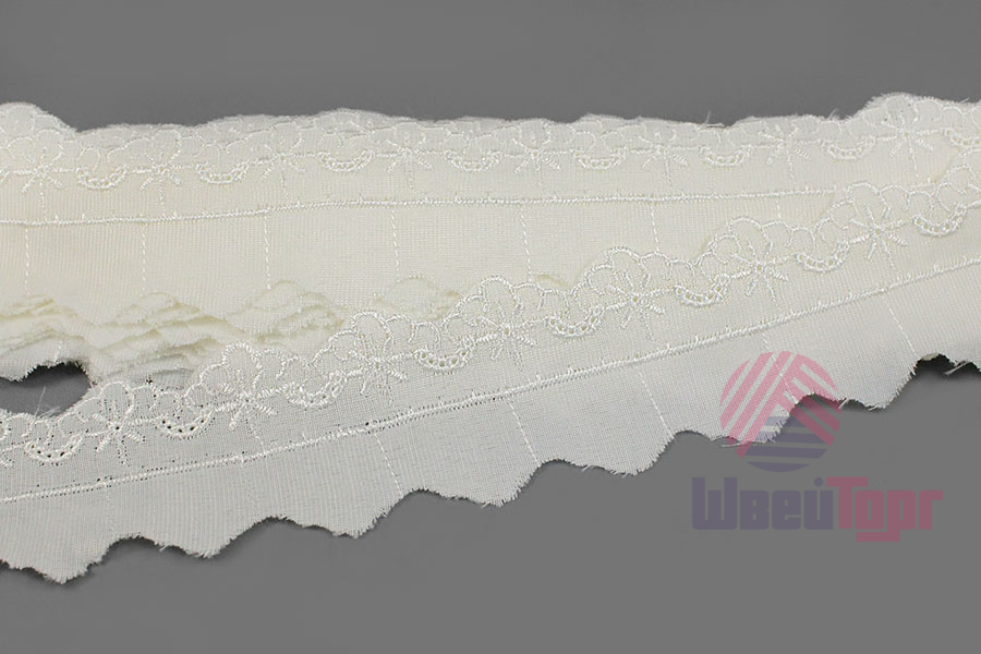 Прошва выполнена из мягкого хлопка с изящной машинной вышивкой и перфорациями. Создаёт эффект нежного кружева и приятна к телу.