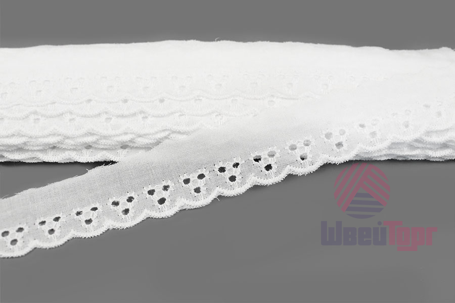 Прошва выполнена из мягкого хлопка с изящной машинной вышивкой и перфорациями. Создаёт эффект нежного кружева и приятна к телу.