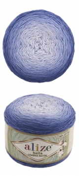 Пряжа Ализе Белла Омбре Батик – нитки в мотках для ручного вязания спицами или крючком. Особенностью является особое окрашивание, из-за которого нити образуют градиент с очень плавным и мягким переходом цвета от почти белого к более насыщенному.