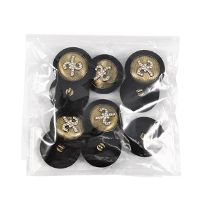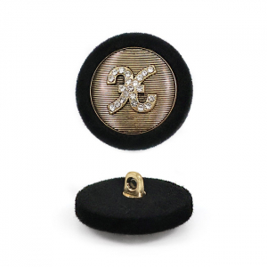Прекрасная деталь для ваших костюмов и жакетов – эта пуговица сочетает в себе сдержанную роскошь и оригинальный дизайн. Её основа, выполненная из металла, покрыта тактильно приятной бархатной фактурой глубокого чёрного цвета, которая эффектно контрастирует с золотистой "сердцевиной". Центр украшает объёмный декоративный элемент, усыпанный мелкими стразами, – он завораживающе искрится и играет бликами при любом освещении, добавляя образу изысканности и индивидуальности.