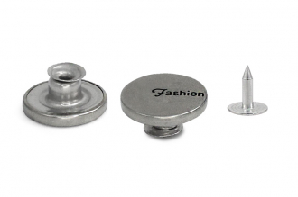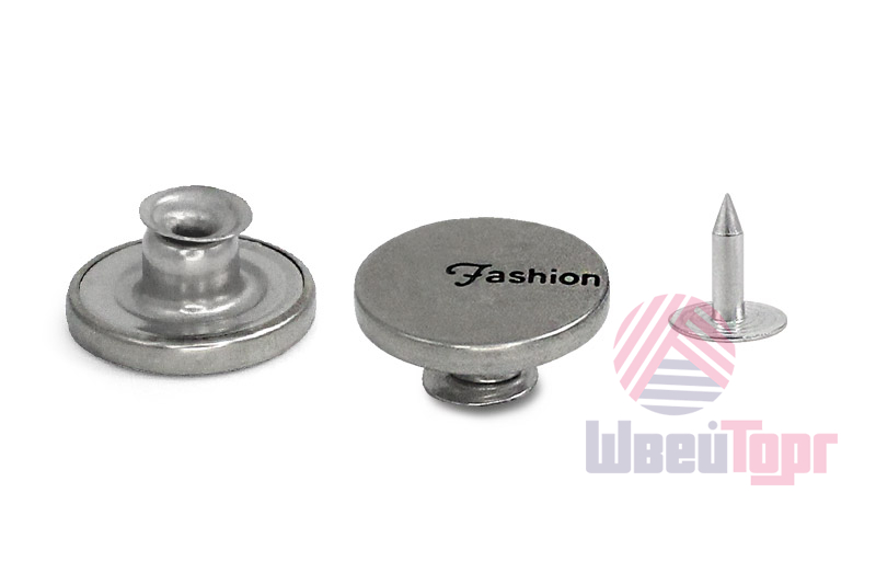 Стильная металлическая пуговица, представлена в двух вариантах – матовый никель (однотонная) и матовый никель (с контрастной тёмной надписью). Пуговица имеет плоскую форму и минималистичный декор в виде небольшой гравировки "Fashion". Эта пуговица станет стильным завершающим штрихом для ваших изделий из джинсы, будь то джинсы, джинсовые шорты или джинсовые куртки. В комплект входят надёжные гвоздики для крепления.