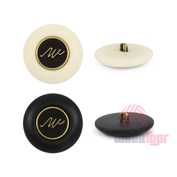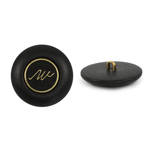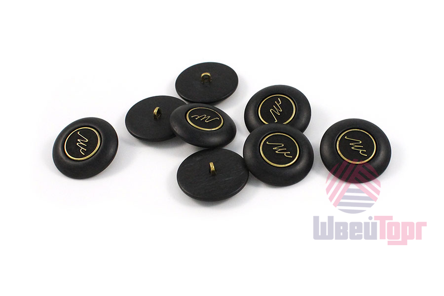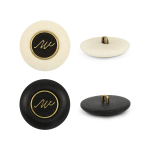 Пластиковая пуговица на ножке для создания стильного образа. Пуговица собрана из двух частей – матовая, с эффектом разводов основа и бронзовый накладной элемент, в виде стилизованной надписи. Сдержанный и интересный элемент для оригинального образа. Пуговица предсталена в двух расцветках: молочный и чёрный.