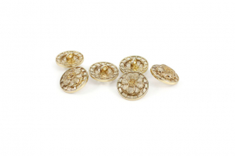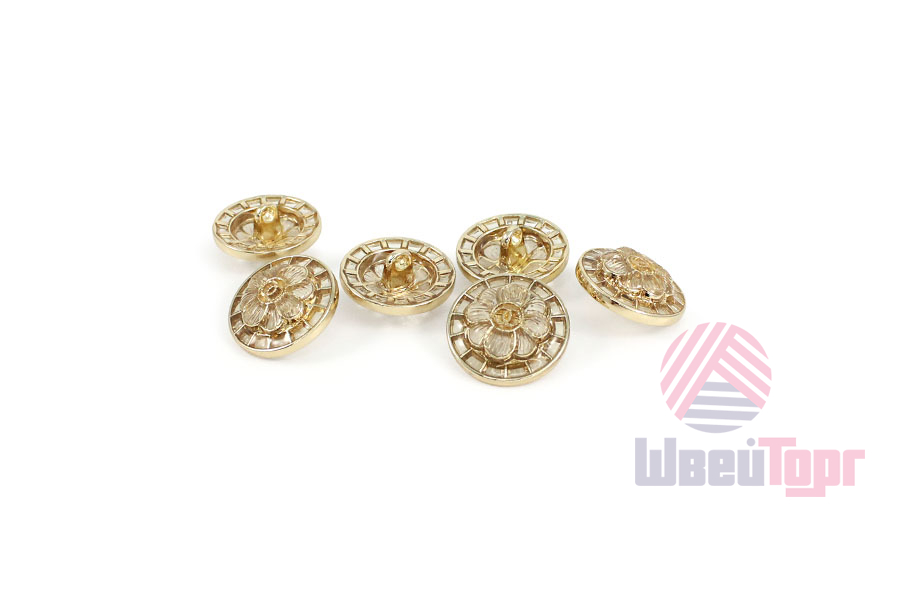 Стильная металлическая пуговица на ножке, имеет круглую форму (диаметр - 17 мм). Пуговица станет отличным украшением ваших костюмов и жакетов.