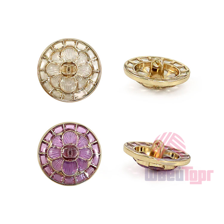 Украсьте изделие по-настоящему стильной и оригинальной пуговицей, которая непременно привлечёт внимание. В основе лежит прочный металлический каркас, декорированный накладным элементои в форме изящного цветка. Пуговица выполнена в сочетании металла с прозрачным акрилом нежных оттенков. Сочетание золотистой основы с полупрозрачным пурпурным или белым цветом создаёт утончённый и эффектный вид, добавляющий шарм любой вещи. Выберите свой вариант из двух цветовых комбинаций: белый с золотом или пурпурный с золотом.