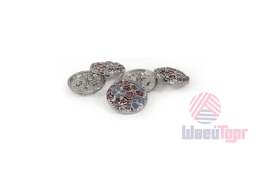Купить Пуговица №П-1098 28L (серебро/голубой/пурпур) 1/15 шт в Воронеже с доставкой - цена 475 руб.