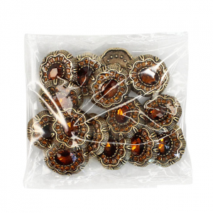 Эта пуговица на ножке станет изысканным завершающим штрихом для вашего изделия. Металлическая основа оттенка «тёмное золото» служит изящной оправой для роскошной композиции: в центре сияет крупная гранёная бусина, имитирующая драгоценный камень, а её блеск многократно усиливается за счёт ореола из мелких сверкающих стразов. Идеальный выбор для вечерних жакетов и костюмов, она представлена в пяти богатых расцветках: топаз, зелёный, розовый, кофе и чёрный.