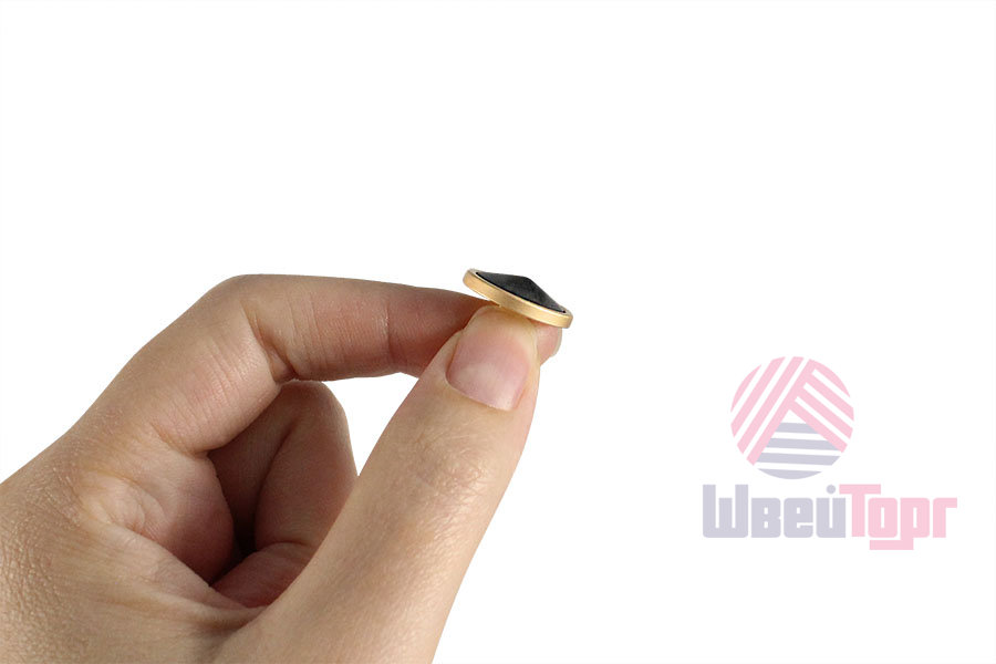 Пуговица на ножке для создания минималистичного и стильного образа. Пуговица собрана из двух частей – основа из матового золота и лицевая часть, конусообразной формы, с лёгким эффектом разводов. Сдержанный и интересный элемент для оригинального образа.