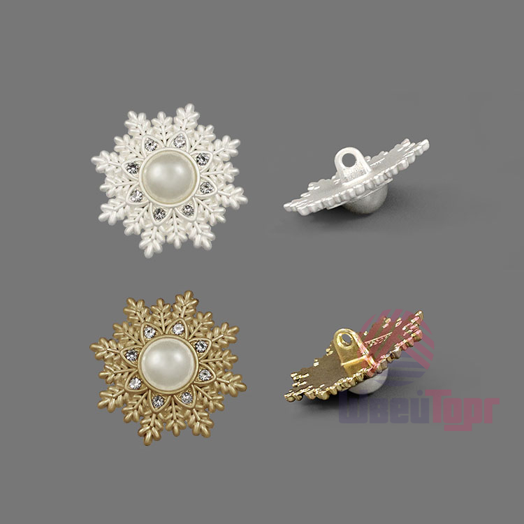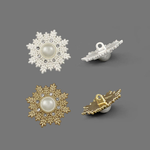 Пуговица доступна в двух цветах – чматовый белый и золотой – оба варианта выгодно подчёркивают фактурную поверхность и добавляют пуговице нотку роскоши. Прочная ножка обеспечивает удобное пришивание, а необычный дизайн делает эту пуговицу настоящим акцентом в вашем образе. Данные пуговицы прекрасно подойдут для ваших костюмов, жакетов или детских предметов одежды.