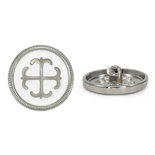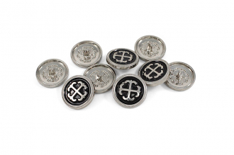 Металлическая пуговица круглой формы, выполненная на удобной ножке-петле для прочного пришивания. Её главная особенность – выразительный контрастный дизайн: центральный объёмный элемент заключен в обрамление из фактурного металлического ободка с чётким рельефом. Пуговица представлена в трёх стильных комбинациях: глубокий чёрный с серебром, белый с серебром и белый с золотом. Такая пуговица станет эффектным акцентом, который превратит пальто, жакет, сумку или другой предмет в законченный дизайнерский look.