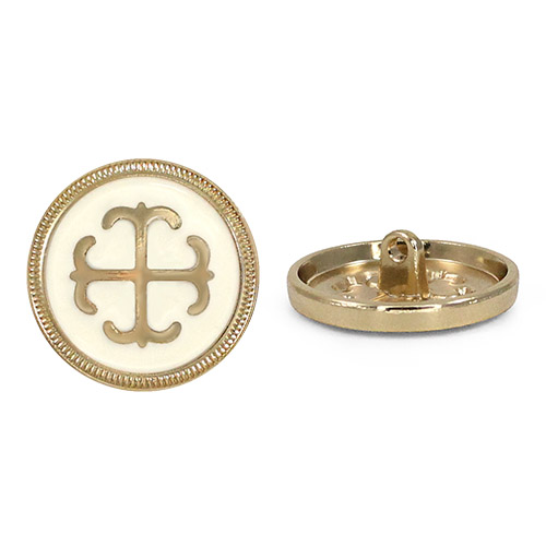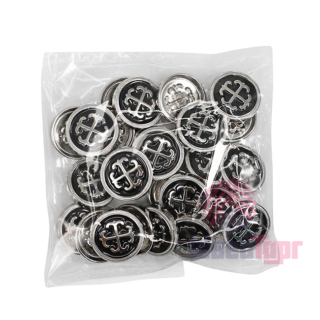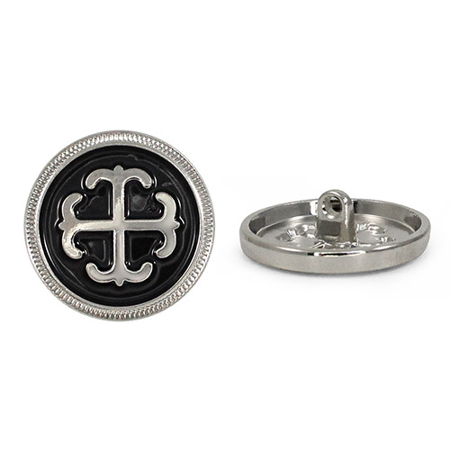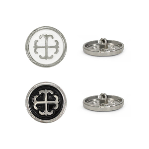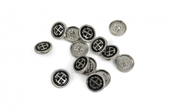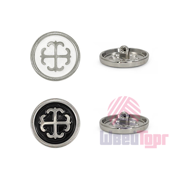 Металлическая пуговица круглой формы, выполненная на удобной ножке-петле для прочного пришивания. Её главная особенность – выразительный контрастный дизайн: центральный объёмный элемент заключен в обрамление из фактурного металлического ободка с чётким рельефом. Пуговица представлена в трёх стильных комбинациях: глубокий чёрный с серебром, белый с серебром и белый с золотом. Такая пуговица станет эффектным акцентом, который превратит костюм, жакет, сумку или другой предмет в законченный дизайнерский look.