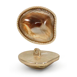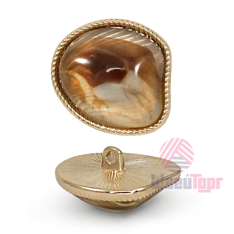 Стильная металлическая пуговица на ножке, имеет нестандартную форму (габаритные размеры - 20х23 мм). Пуговица станет отличным украшением ваших костюмов и жакетов.