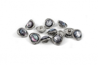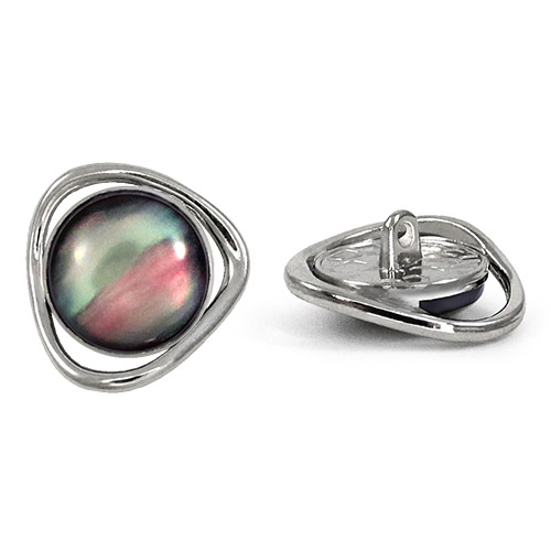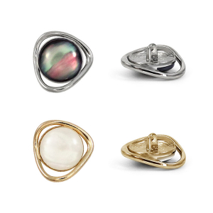 Эта пуговица напоминает миниатюрное произведение искусства. Её основа – стильный асимметричный обод, в центре которого, словно драгоценный камень, сияет выпуклая глянцевая вставка. Пуговица притягивает взгляд своей безупречной чистотой линий и лаконичностью. Представлена в двух вариантах: меланж/серебро и белый/золото.