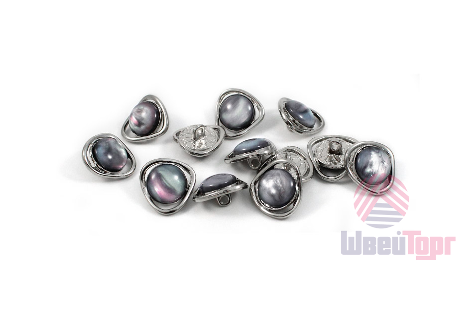 Стильная металлическая пуговица на ножке, имеет оригинальную форму (габаритные размеры - 17х18 мм). Пуговица станет отличным украшением ваших костюмов и жакетов.
