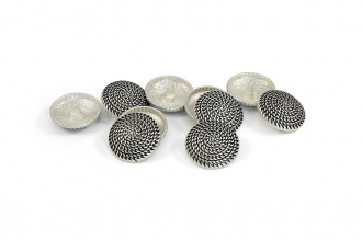 Эта пуговица на ножке сразу привлекает внимание своей уникальной фактурной поверхностью в виде имитированных цепей. Такой выразительный дизайн делает её настоящим акцентом, способным преобразить и украсить любой предмет одежды. Пуговица представлена в двух благородных цветах – серебро и светлое золото, что позволяет подобрать идеальную фурнитуру для вашего проекта, добавляя ему индивидуальности и стиля.