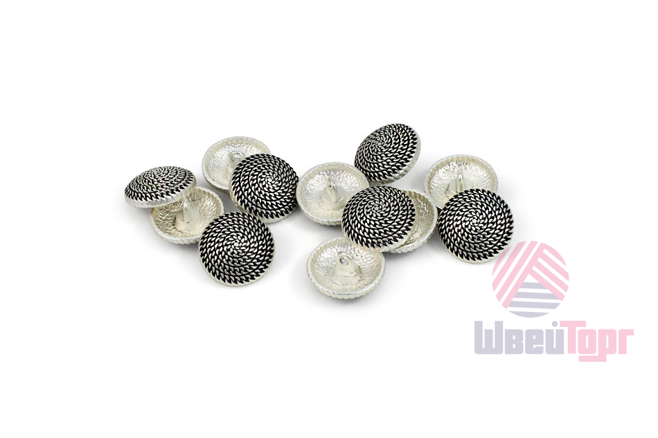 Эта пуговица на ножке сразу привлекает внимание своей уникальной фактурной поверхностью в виде имитированных цепей. Такой выразительный дизайн делает её настоящим акцентом, способным преобразить и украсить любой предмет одежды. Пуговица представлена в двух благородных цветах – серебро и светлое золото, что позволяет подобрать идеальную фурнитуру для вашего проекта, добавляя ему индивидуальности и стиля.