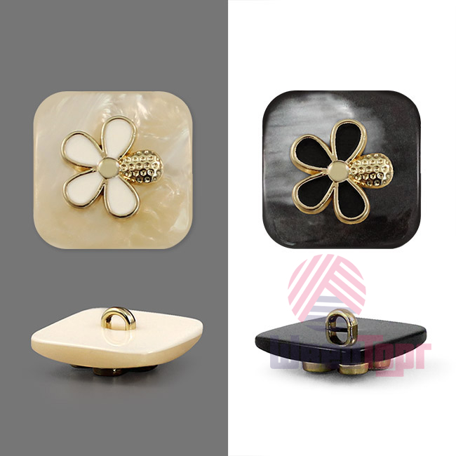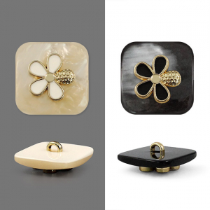 Пластиковая пуговица на ножке, имеет квадратную форму (размер 18х18 мм), станет отличным украшением для костюмов и жакетов.