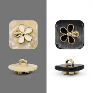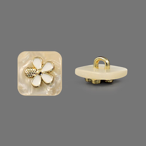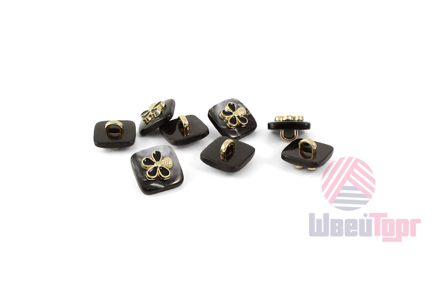 Пластиковая пуговица на ножке, имеет квадратную форму (размер 14х14 мм), станет отличным украшением для костюмов и жакетов.