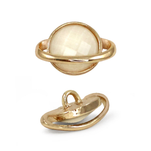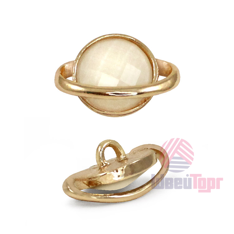 Эта пуговица напоминает миниатюрное произведение искусства. Её основа – стильное металлическое кольцо, которое обрамляет стилизованную "планету", в виде сияющей гранёной вставки, словно драгоценный камень. Пуговица притягивает взгляд своей лаконичностью и оригинальным дизайном.