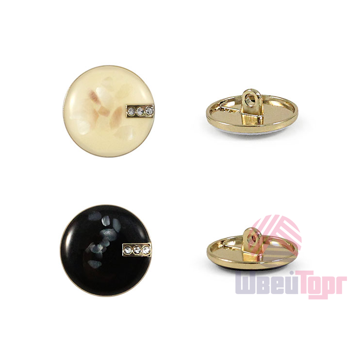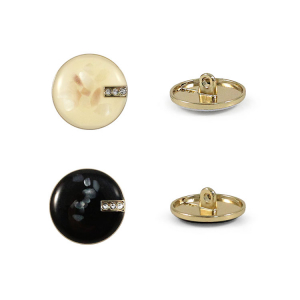 Пуговица на ножке для создания минималистичного и стильного образа. Пуговица собрана из двух частей – золотистая основа и лицевая часть, с интересным эффектом, словно мазки краски застыли под смолой. С лицевой стороны пуговицу украшает накладной элемент с мелкими стразами. Сдержанный и интересный элемент для оригинального образа.
