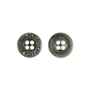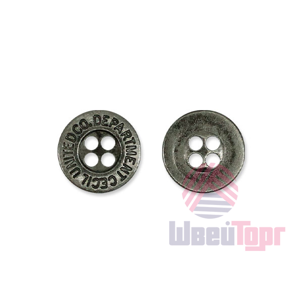 Стильные металлические пуговицы, имеют практически плоскую форму, со слабо выраженным ободком, на котором располагается гравировка – "DEPARTMENT CECIL UNITED CO@".