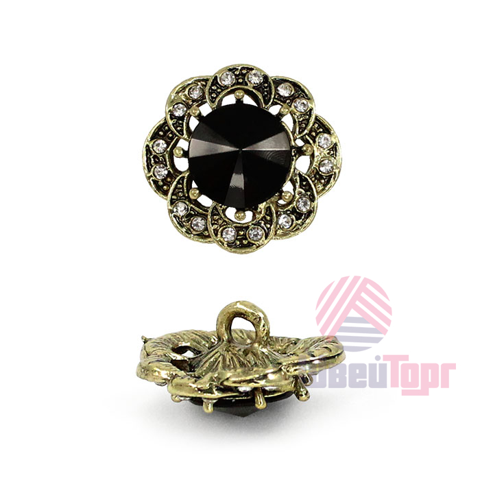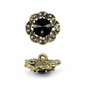 Элегантная пуговица в форме цветка, станет изысканным акцентом вашего изделия. Её оригинальный дизайн сочетает в себе акцентную центральную часть, в виде крупного страза, обрамлённую стилезованными лепестками, усыпанными мелкими стразами. Диаметр пуговицы: 1,9 см.