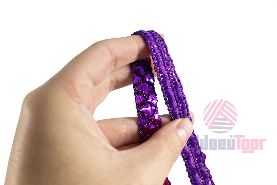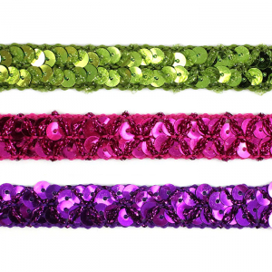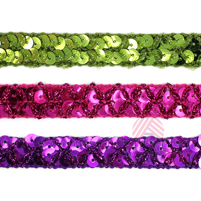 Декоративная тесьма с пайетками служит акцентной отделкой для разнообразных проектов, от скрапбукинга до пошива национальных и сценических костюмов. Плетение тесьмы создаёт красивый узор, а добавление пайеток придаёт мерцающий эффект.