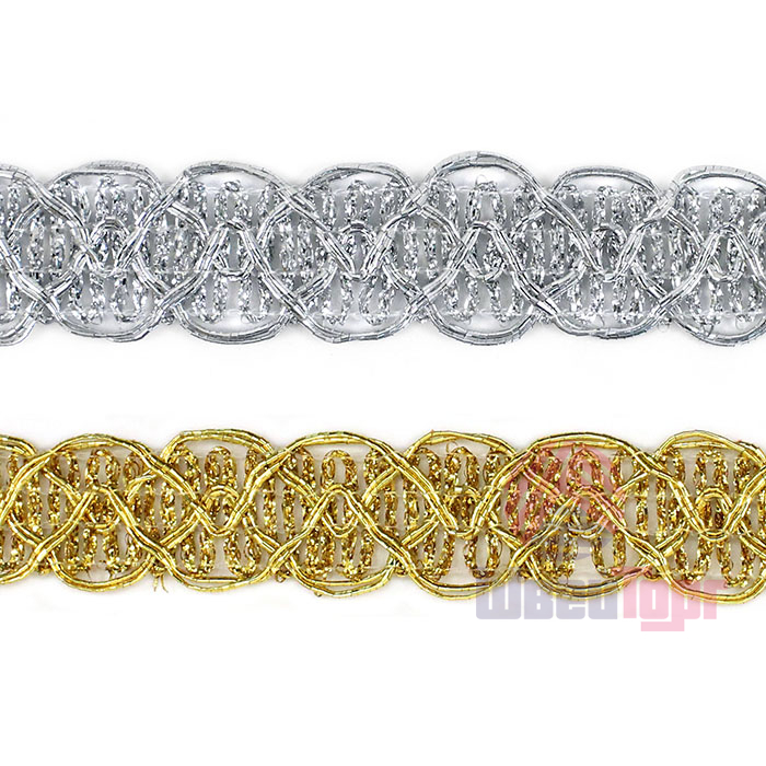 Тесьма доступна в двух цветах: золото и серебро. Она идеально подходит для отделки одежды, декора сценических костюмов, а также для украшения головных уборов и элементов интерьера. Представляет собой прочную плетёную, рельефную тесьму с повторяющимся геометрическим узором. Тесьма пронизана металлизированными нитями, что придаёт ей уникальный блеск. Создавайте свои неповторимые изделия!