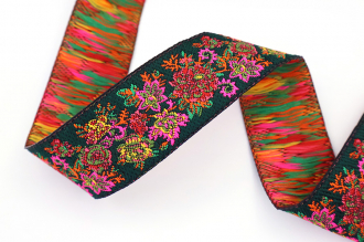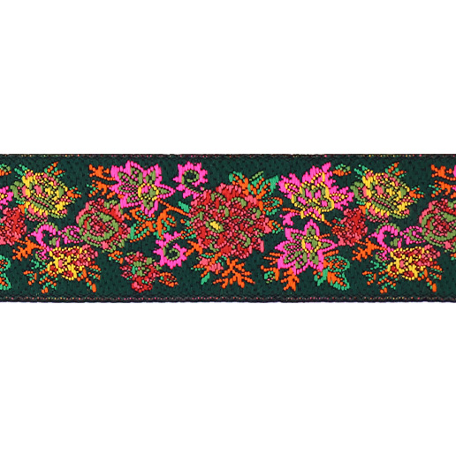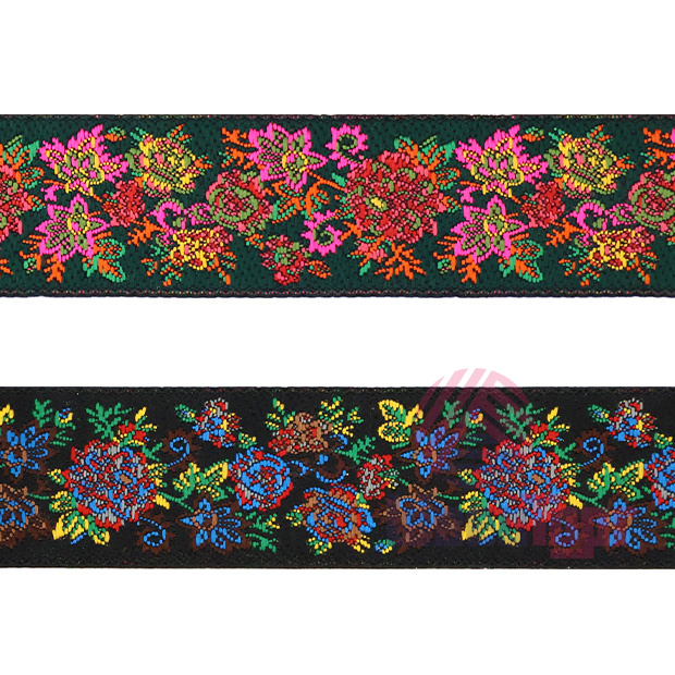 Данная жаккардовая тесьма обладает высокой прочностью, устойчива к растяжению и истиранию. Рисунок формируется непосредственно в процессе плетения, что придаёт тесьме эффект вышивки. Благодаря высококачественному полиэстеру тесьма сохраняет яркость цветов и не теряет своего внешнего вида долгое время.