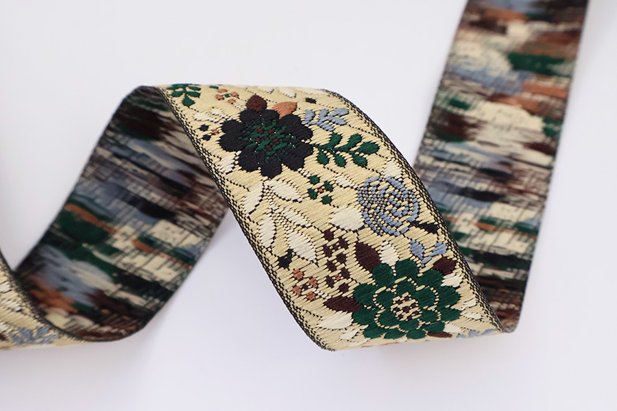 Данная жаккардовая тесьма обладает высокой прочностью, устойчива к растяжению и истиранию. Рисунок формируется непосредственно в процессе плетения, что придаёт тесьме эффект вышивки. Благодаря высококачественному полиэстеру тесьма сохраняет яркость цветов и не теряет своего внешнего вида долгое время.