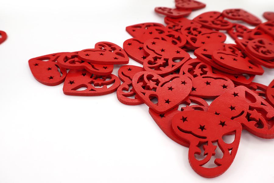 Деревянное украшение «Красное сердце» выполнено из древесины и покрыто стойкой тёмно-красной краской, которая не облазит со временем и сохраняет насыщенность цвета даже при длительном использовании. Изделие имеет резную структуру со сквозным изящным рисунком, что придаёт ему воздушность и визуальную лёгкость — ажурный узор просматривается насквозь, создавая интересную игру света и тени. Толщина украшения составляет 2 мм, а размер — 3,5×3 см, что делает его аккуратным и удобным для размещения на различных поверхностях.