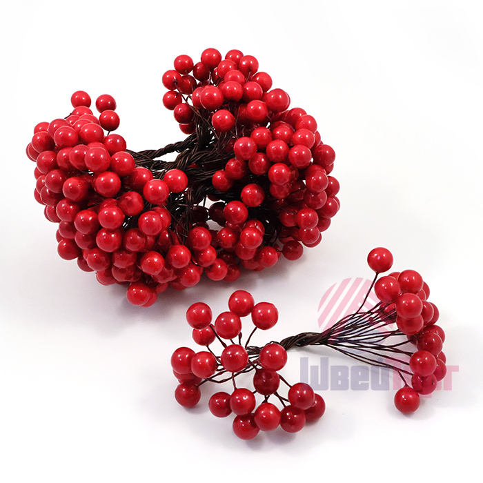 В упаковке 200 шт. элементов-проволок с двумя ягодами. Все проволочки с ягодами для удобства скручены в пучки по 20 штук. Всего в упаковке 10 пучков (400 ягод).